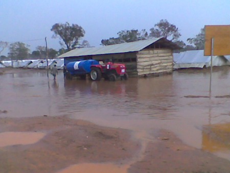 ඊයේ ගත් මෙම ඡායාරූපය මැණික් ෆාම් කඳවුර වැසි ජලයට යටවී එහි කූඩාරම් බොහෝ දුරට වාසයට නුසුදුසු බවට පත්කොට ඇති අයුරු පෙන්නුම් කරයි. අභ්යන්තරව අවතැන් වූවන් 1000 ක් පමණ “විකල්ප වාසස්ථාන” කරා ගෙන ගිය නමුදු සෙසු ජනයාට වගුරු බිමෙහි මඩ ගොහොරුවෙහි තව දුරටත්රැඳී සිටින්නට සිදුවීය.