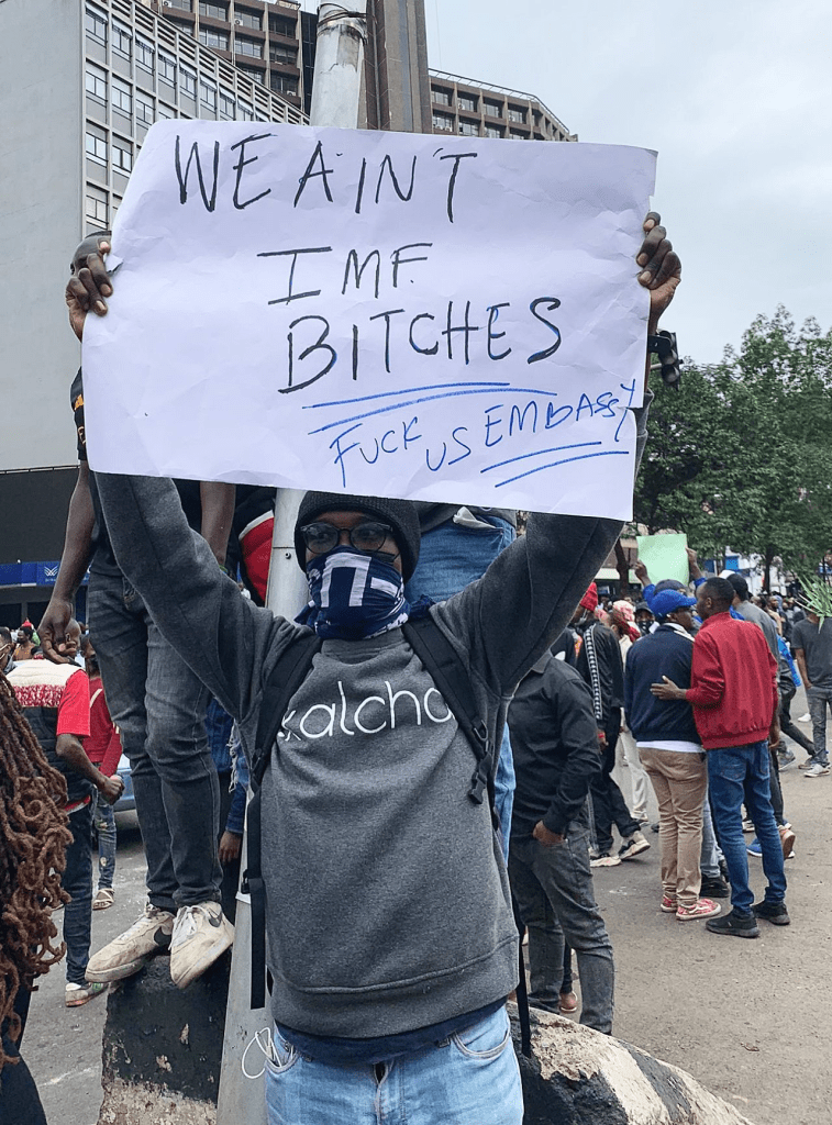 අයිඑම්එෆ්, ලෝක බැංකුව,ආසියානු සංවර්ධන බැංකුව ඇතුළු නව ලිබරල් කොන්දේසි සහ ගිණි පොලී පණවන, සියළු කොල්ලකාරී, යටත්විජිතකරණ, ජාත්යන්තර ණය මෝරුන්ගෙන් නිදහස් වෙමු!